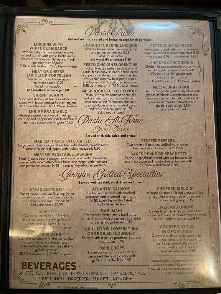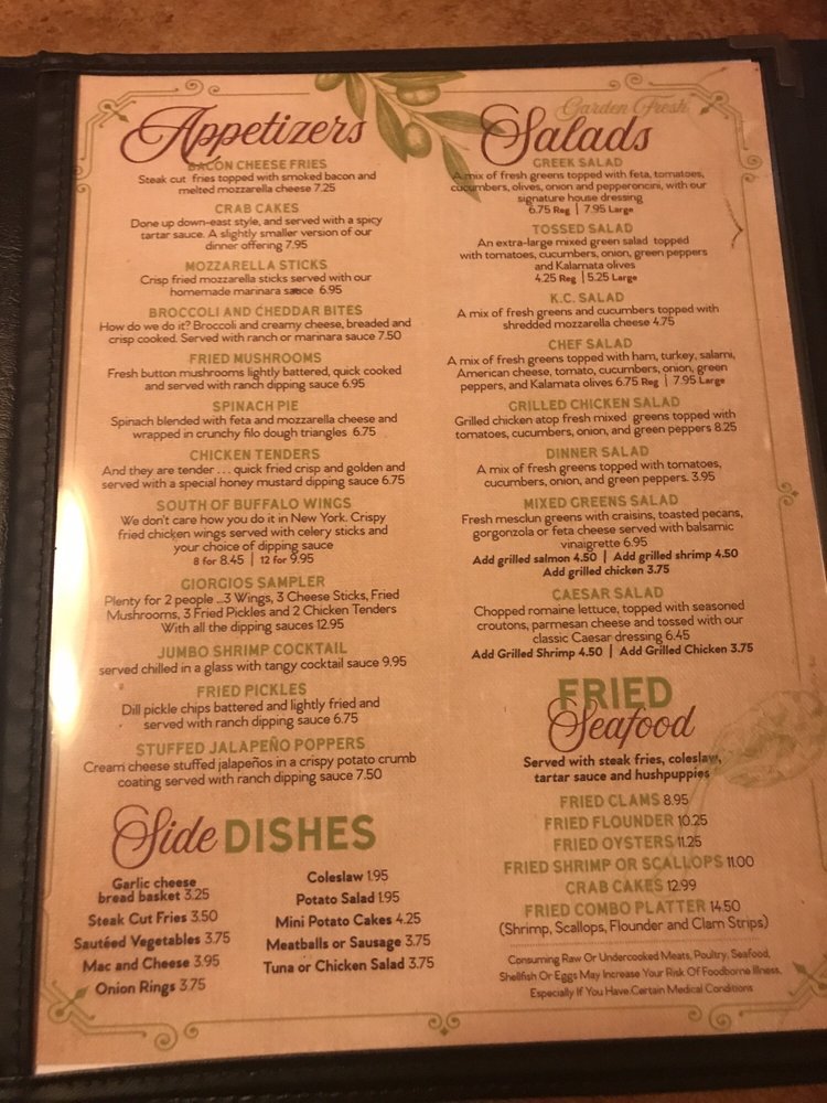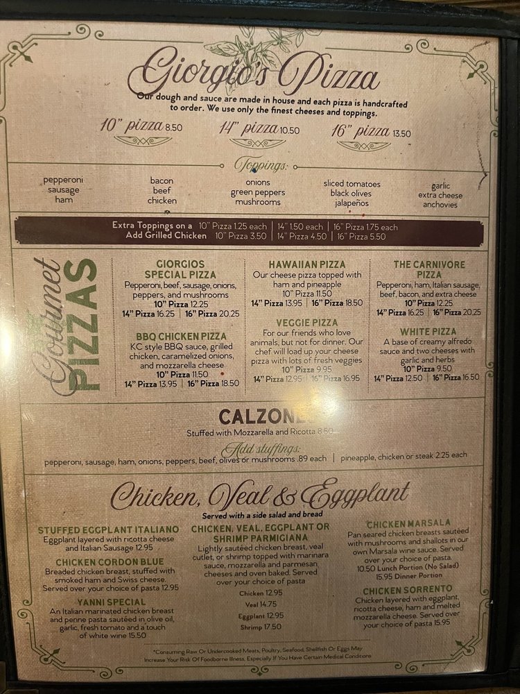 Giorgio's Restaurant and Pizza Menu (2025 Update)
